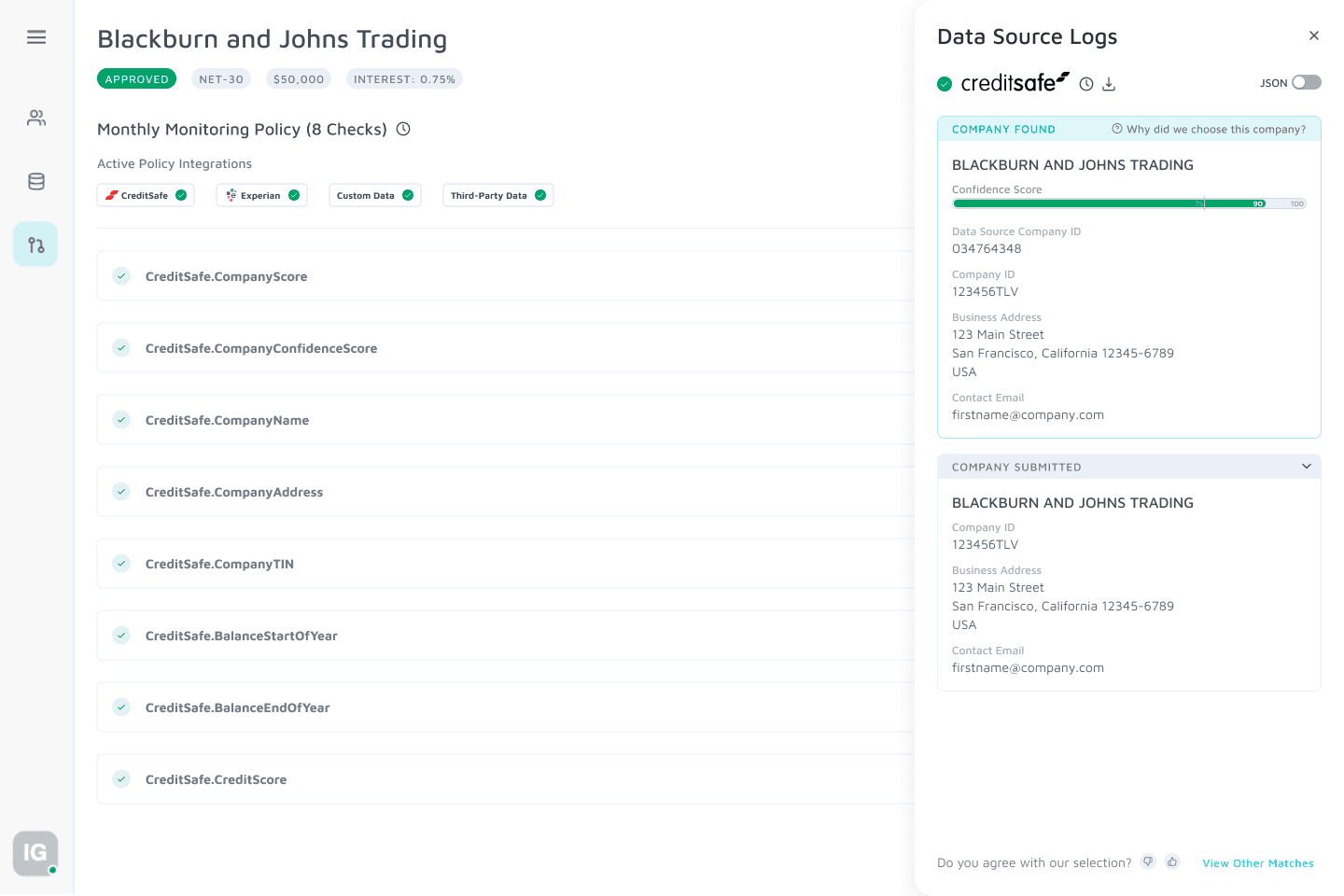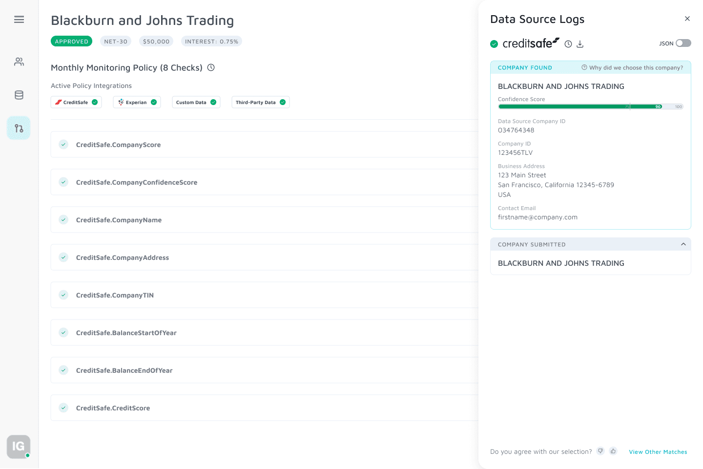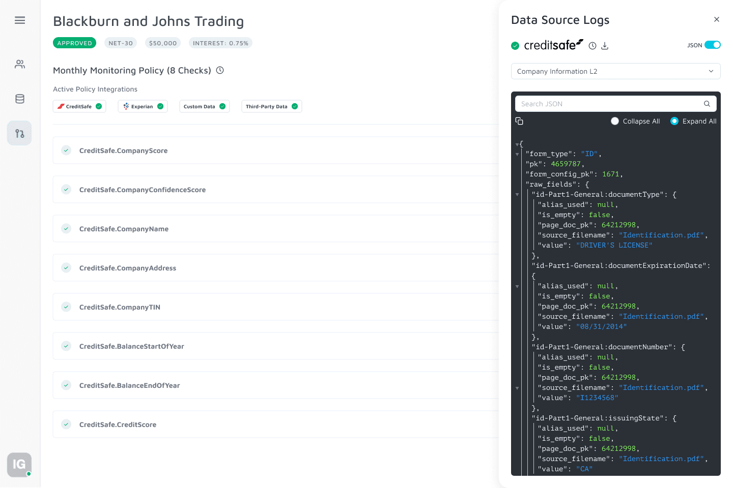 Increased transparency into automated decisions with added visibility to conditional pass/fail credit checks and details to onboarding statuses (Approved, Pending Review, Rejected, Error)