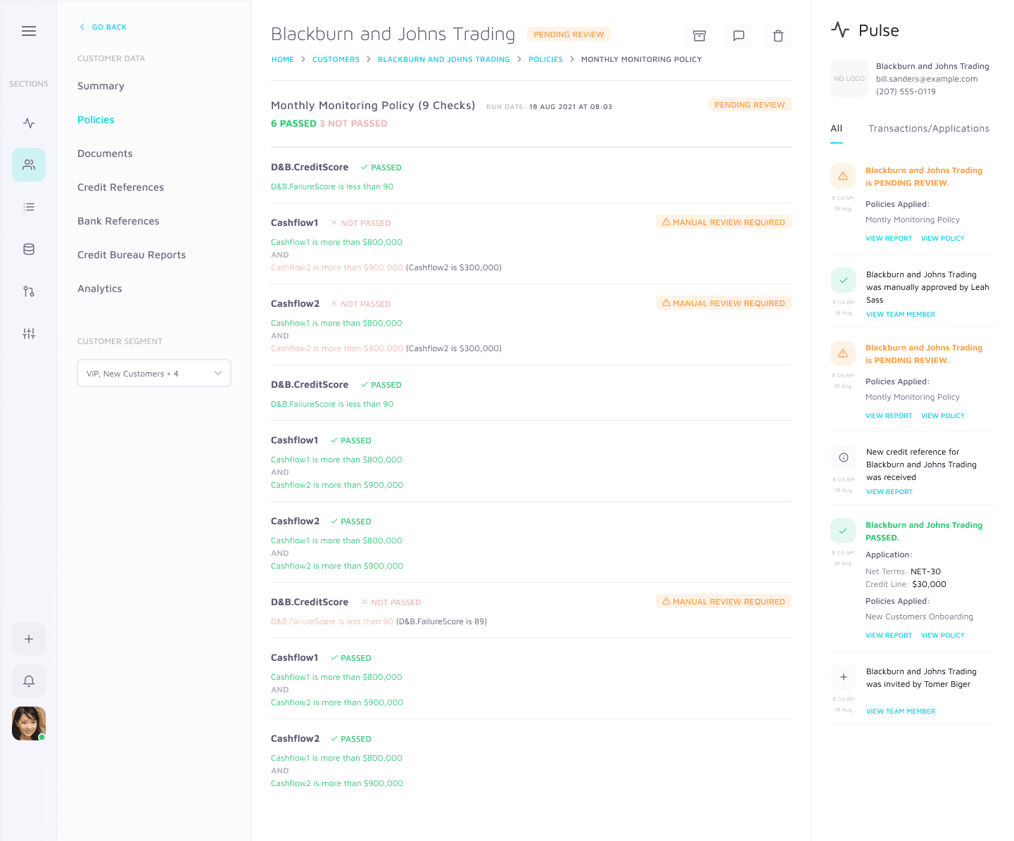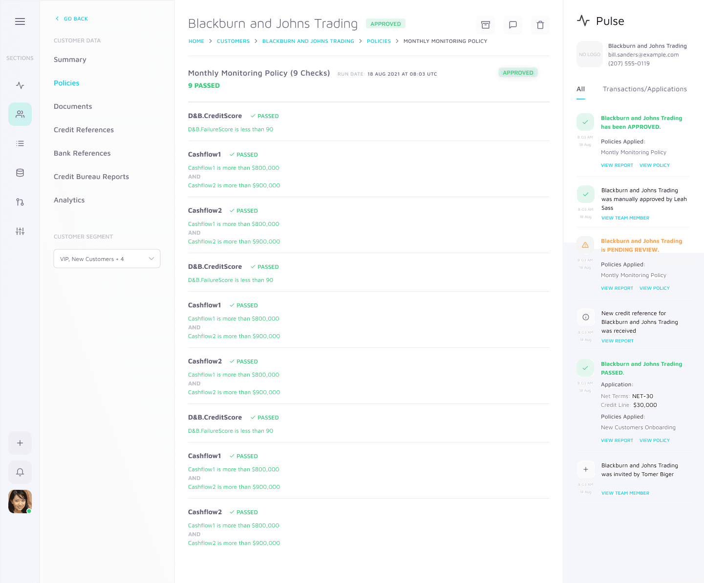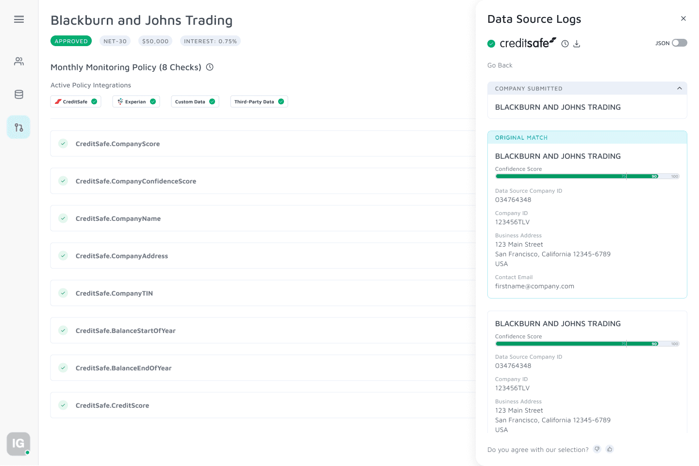 Increased transparency into automated decisions with added visibility to conditional pass/fail credit checks and details to onboarding statuses (Approved, Pending Review, Rejected, Error)